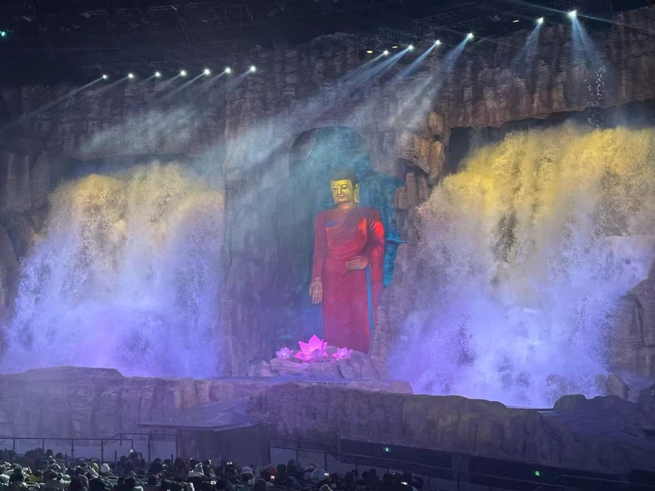 巨型佛像:演出中巨型大佛会缓缓升起,营造出壮观的场景,给观众带来强烈的视觉冲击。