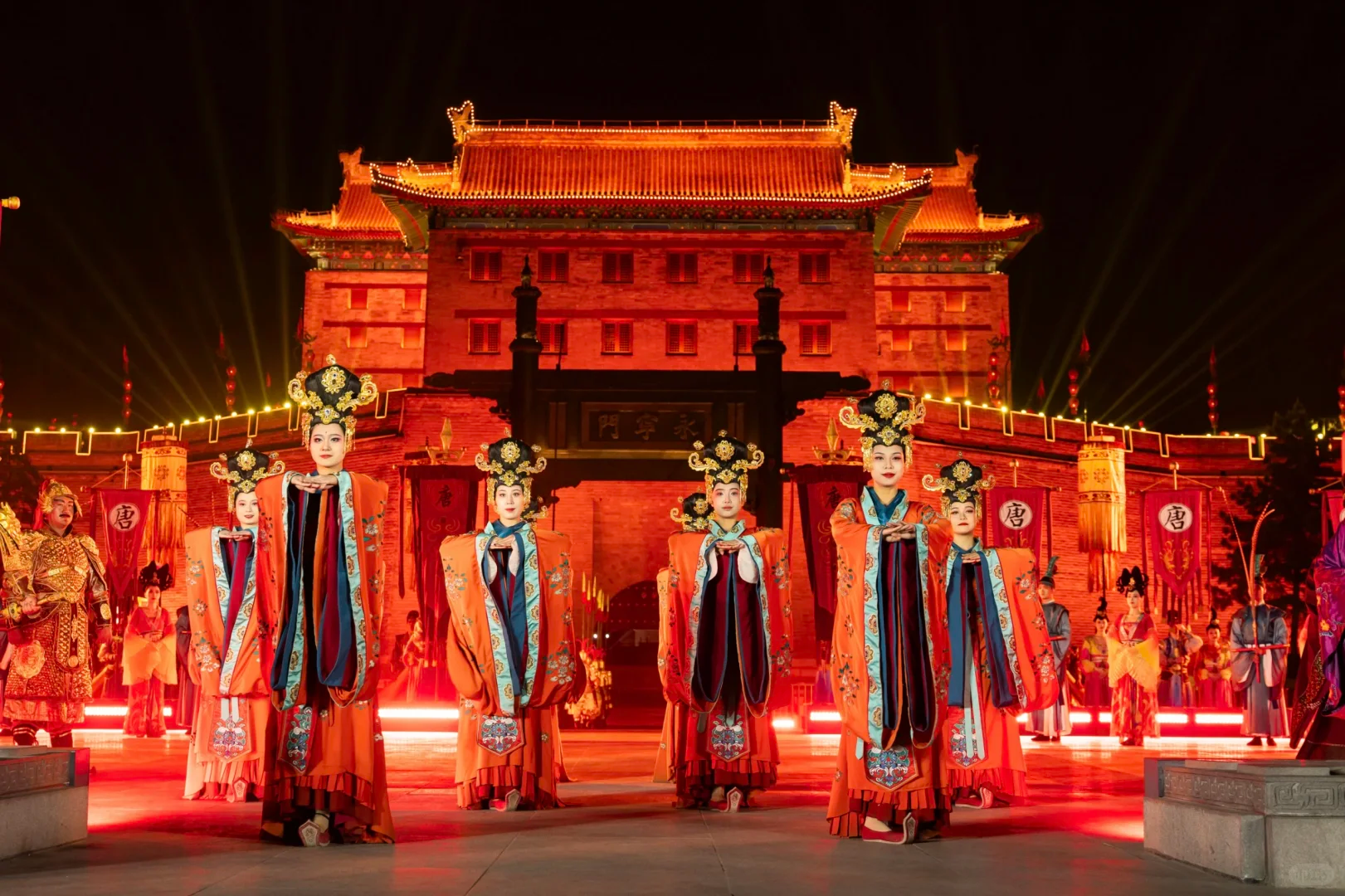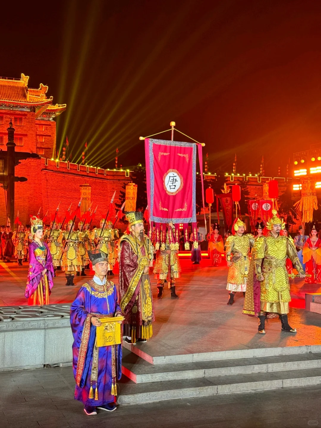 亮点:全球唯一以城墙为背景的迎宾演出,鼓乐齐鸣、舞蹈优美、仪仗威严,再现大唐盛世万国来朝的外交盛况,还能参与互动,体验当 “大唐贵宾” 的感觉。