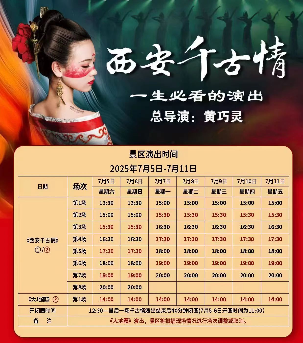 演出时间:具体演出时间可能会因季节或特殊情况有所调整,建议提前在景区官网或购票平台确认。