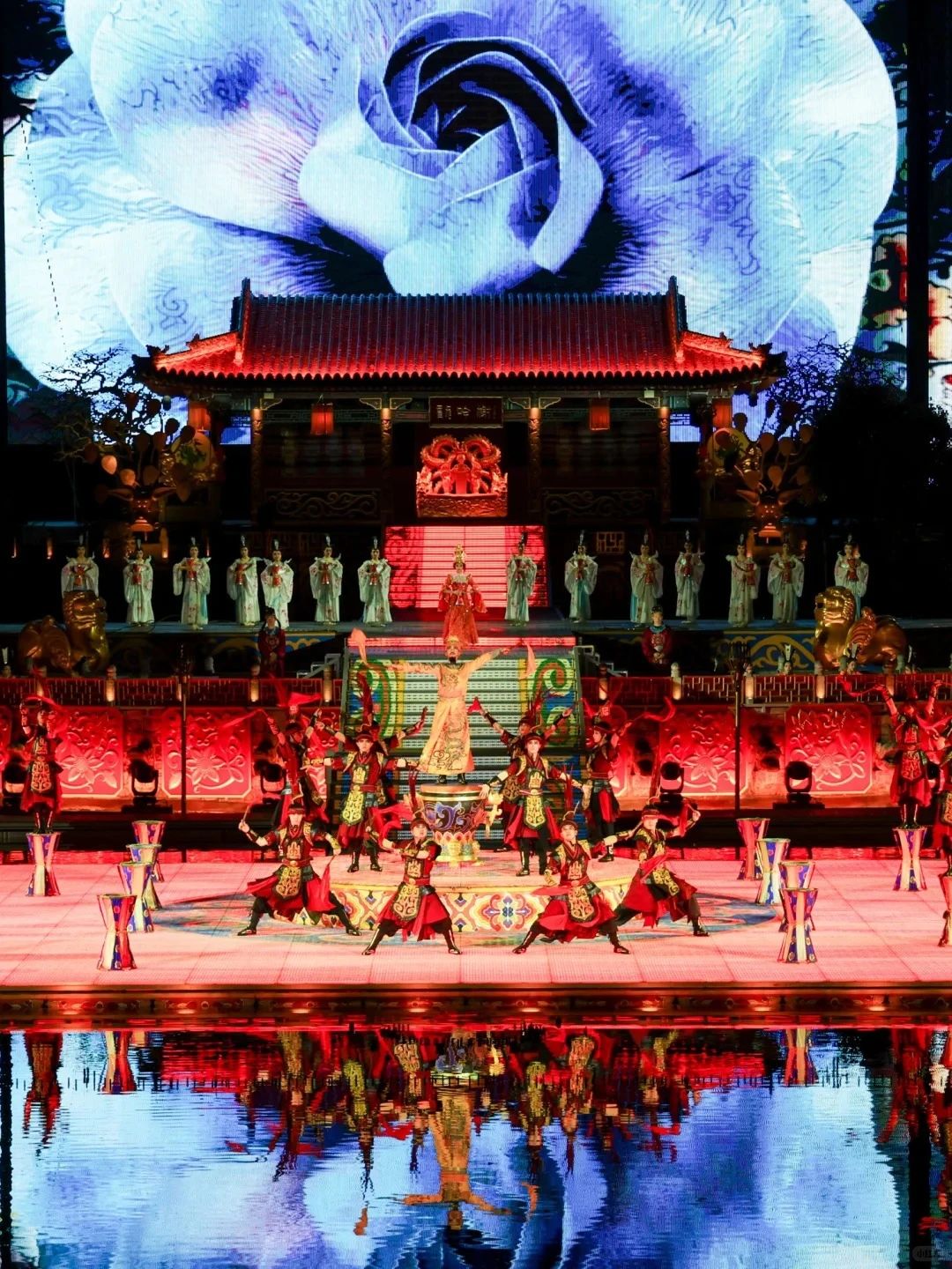 《长恨歌》绝对是西安演出的 “扛把子”, 作为中国首部大型实景历史舞剧,它以白居易的同名长诗为蓝本,在华清宫里,依托骊山天然山体与九龙湖实景,为我们勾勒出了一幅美轮美奂的盛唐画卷。演出全长 70 分钟,把唐玄宗与杨贵妃的爱情悲剧和大唐兴衰展现得淋漓尽致。
